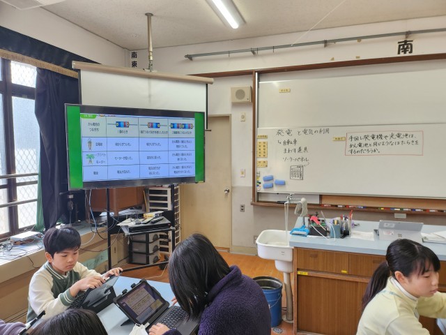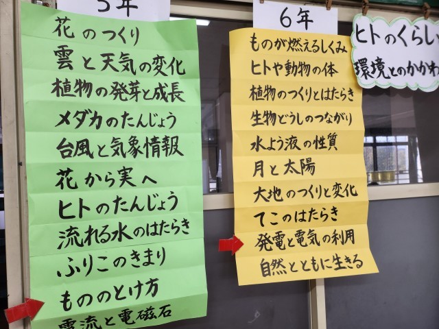 理科室には5年生、6年生それぞれの学習内容が掲示されています。