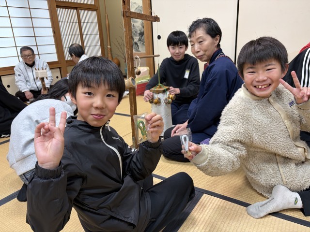 伝統工芸士さんからは、「組みひもは縁起が良いものなんですよ」というお話もいただき、子どもたちは「どこにつけようかな」とわくわくしていました。