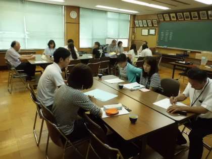 その後,今年度の学校での健康教育の取組や水泳指導について各係から説明した後,グループに分かれて「砂川小学校の子どもたちのからだとこころについて〜健やかに成長しているところと気になるところ」について意見交流をしました。