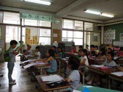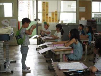 2年1組に交流に来ているわかばのお友達が「わかばdeあそぼう」の招待状をもって来てくれました。今から心まちにしているみんなです。