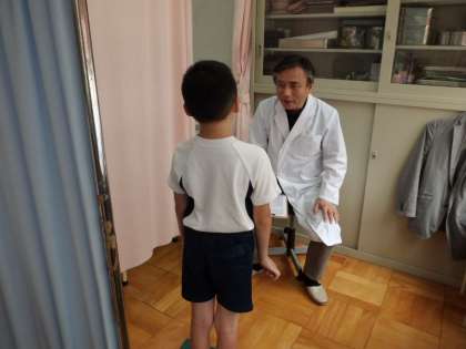 学校医の福島先生に来ていただき,5月には全校の内科検診(3日間)があり,また昨日は四肢(運動器)の状態検査があり,全校で40人の子どもたちの様子を一人一人,優しく丁寧に診てくださいました。