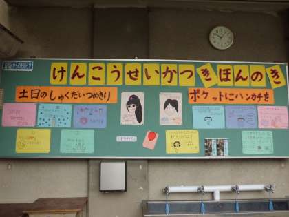 児童保健委員会掲示板「けんこうせいかつ きほんのき」