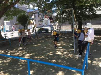 校区の公園なので,行ったことがある子どももたくさんいましたが,はじめての子どもたちは大きな遊具にびっくり。