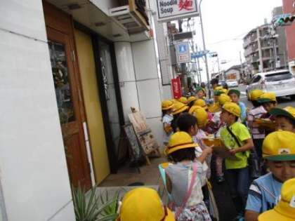 校区の色々な場所を歩いて,お店の外を見学しました。