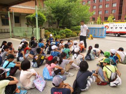 学校から歩いて向かいます。歩道の歩き方など,みんなで声をかけあったり,またあいさつもしっかりできていました。