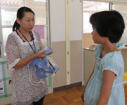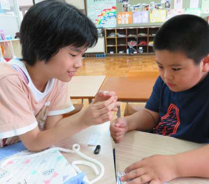4年生にも「こんなふうに縫っていったんやで〜」と誇らしげに見せていました。