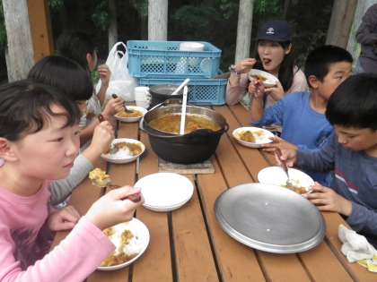 カレーをもりもり食べて、完食!