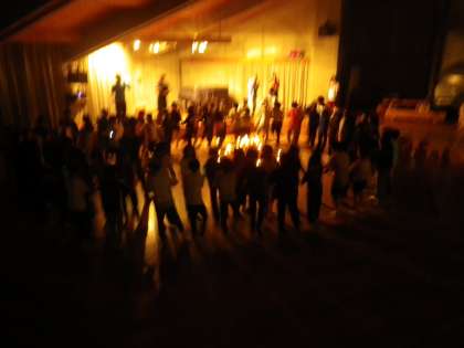 フォークダンスは「右、右、1・2・3・4」などと声をかけながら、ぴょんぴょん飛び跳ねて楽しそうに踊っていました。