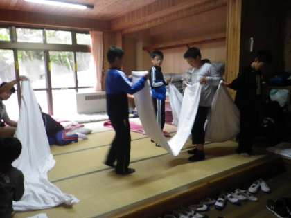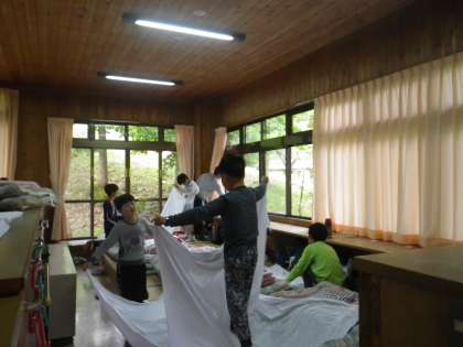 朝起きて、さっそく布団やシーツをたたみました。