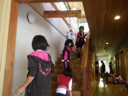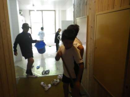 4日間使ってきた部屋や宿泊棟をきれいに掃除しました。