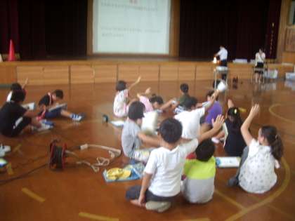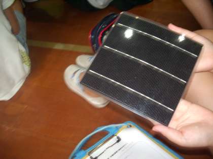 学習のはじめから,クイズに答えたり,ソーラーパネルを見たりと太陽光発電について楽しく学びました。