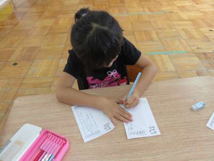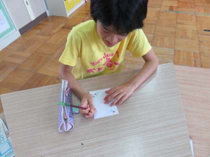 「郵便屋さんに読めるような字を書かなあかんな」と言いながら,