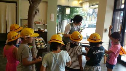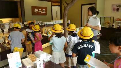 校区たんけんで,学校の近くにあるお菓子屋さん「若菜屋」さんへ行きました。