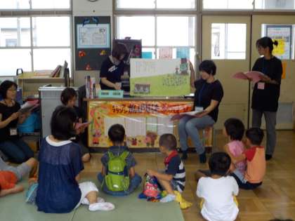 その後には,図書ボランティアさんによる大型絵本「にゃーご」の読み聞かせを聞きました。ねずみたちが「にゃーご」というシーンでは,笑いが起こりました。
