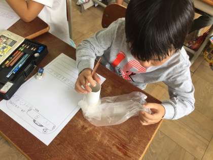 学校に帰って来てからは,「見つけたよカード」を書きました。