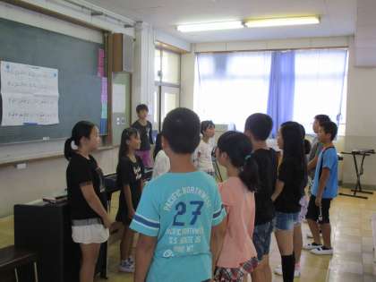 お互いの声を聞き合いながら,どのように歌ったらいいか話し合い
