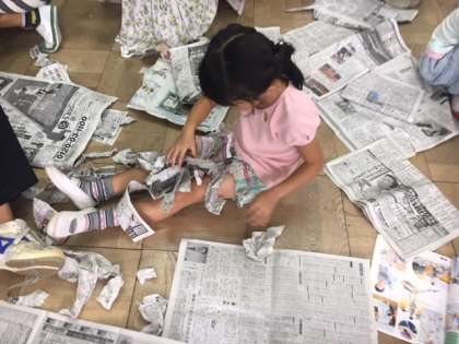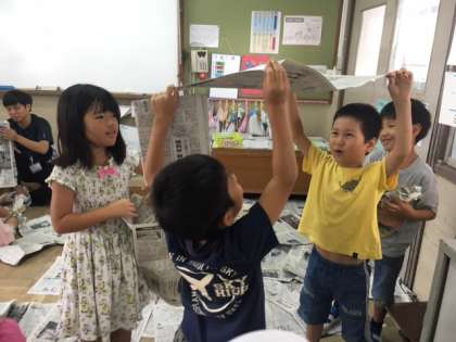 新聞紙1つでいろいろなことができることが子どもたちは楽しかったようです。