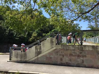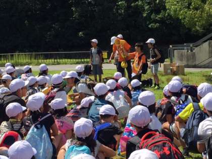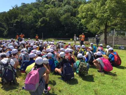 はじめの言葉,校長先生からのお話,児童会からの説明,諸注意のあとは,校長先生によるくじ引きです。くじを引いた番号順にオリエンテーリングスタートです。