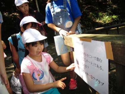 各縦割りグループに分かれて,クイズや暗号を見つけながら,ウォークラリーをしました。「え〜答えどれかな?」と言いながら,グループで仲良く活動することができました。