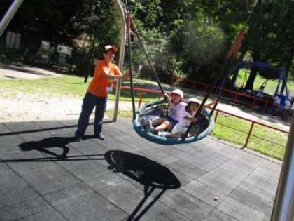 昼食後は,自由時間です。普段,学校にはない遊具がいっぱいで,大興奮でした。大きなブランコを押してもらいながら,「たのし〜!」と笑顔いっぱいでした。