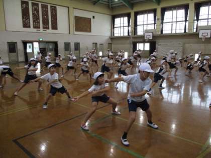 今日は、「ロックソーラン」の踊りを進めていきました。