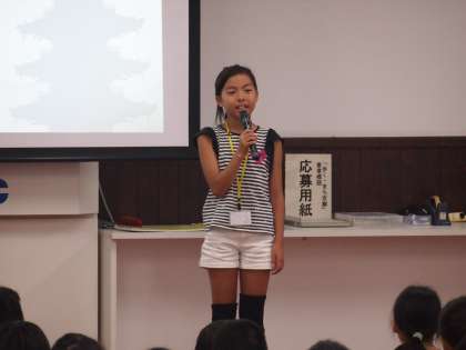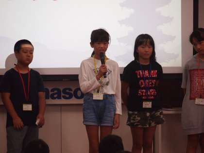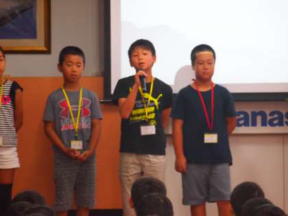 説明の後は第一回全体ミーティングが開かれました。それぞれの店舗の代表者からあいさつがあり,最後は区長が区長宣言を行いました。しっかりとあいさつをすることが出来ました。