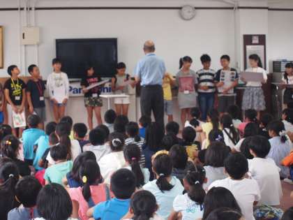 お昼休憩が終わると,すぐに仕事に戻ります。午後の部は第3回全体ミーティングからスタートします。それぞれの店舗のおすすめ商品やサービスについて,代表者が宣伝しています。