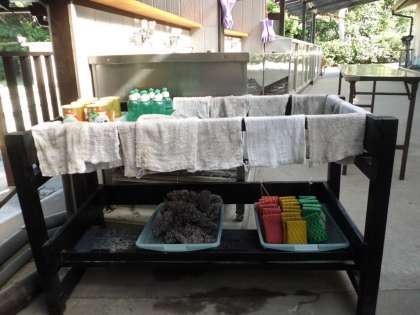 朝ごはんの片付けをして,昨日野外炊事で使った場所のそうじをしました。