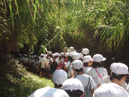 「本当にこんなところにあるの?」と子どもたちはドキドキです。