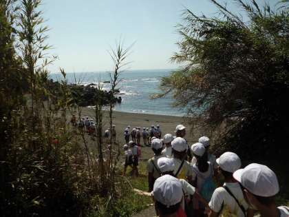 ここから,生き物の観察にぴったりな磯のポイントへ向かいます。