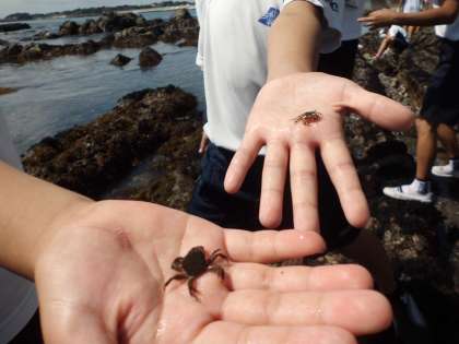「あっちにカニとかヤドカリめっちゃいたで!きてきて!」と