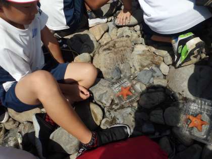 マリンランドの方が持ってきてくださったヒトデで,実験をしました。
