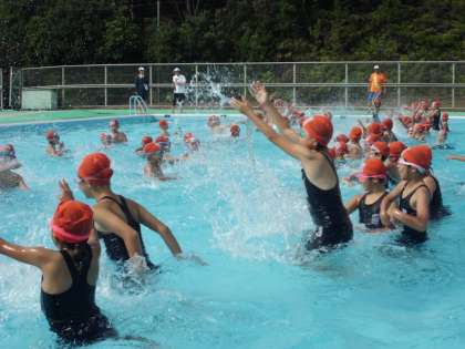 水かけや鬼ごっこをして,25mを泳ぎました。