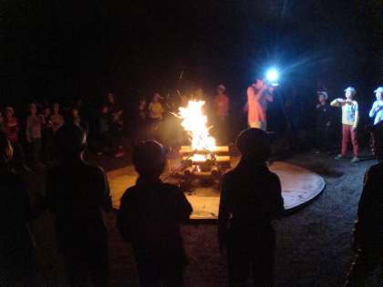 クワガタだけでは寂しいと,周りの子どもたちを仲間に引き入れ踊ります。