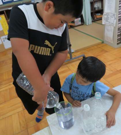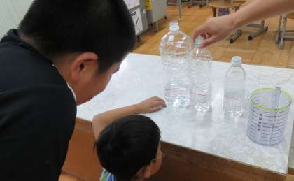 実際に水をいれて比べてみるとかさが違うことがよく分かっていました。