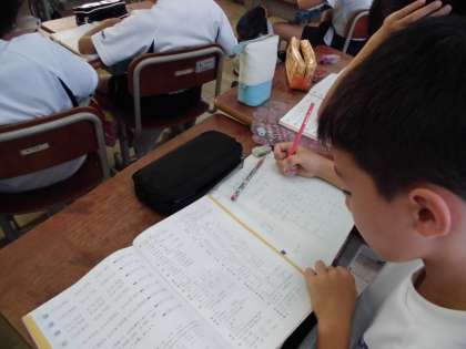 後期始業式のあと,自分のめあてをもって学習に臨みました。ノートに丁寧に字をかいたり,練習問題をどんどん進めて自分で答え合わせをしたり・・・。後期もがんばろうと思っている気持ちが伝わってきました。算数の学習でこつこつがんばっている様子です。