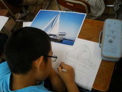 描きたい場面に登場する物を,本や写真を見ながら