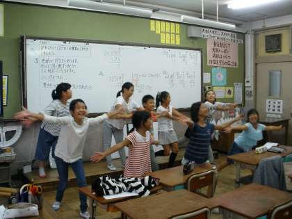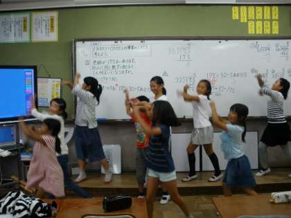 休み時間に,運動会で踊る全校ダンスの