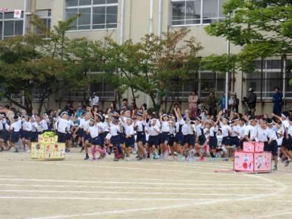 4人で息を合わせ,リレー形式でみこしをつなぎました。はじめのお祭りダンスや,力強いかけ声も素敵でした。