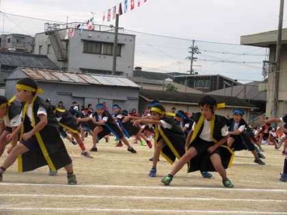 「どっこいしょー!どっこいしょ!」「ソーラン!ソーラン!」の大きなかけ声や,ひとつひとつの動き,ビシッときまった構えの姿勢もきれいでした。