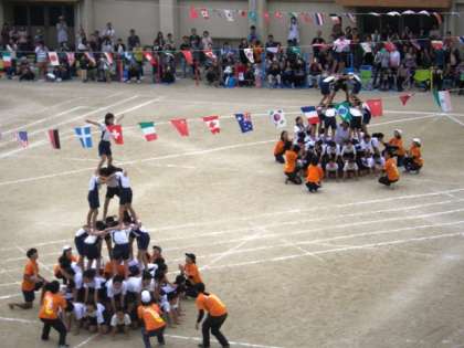 『1〜(ワン)』というタイトルには,「心を一つに」「京都で一番の組体操を」「最高学年として最高の姿を見せたい」という思いがこめらていました。その思い通り,最高の演技を披露してくれ,見ている人たちみんなに感動を与えてくれました。