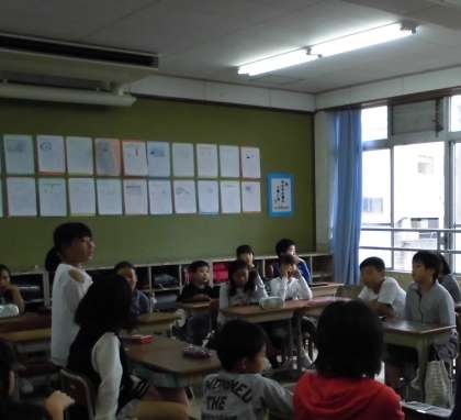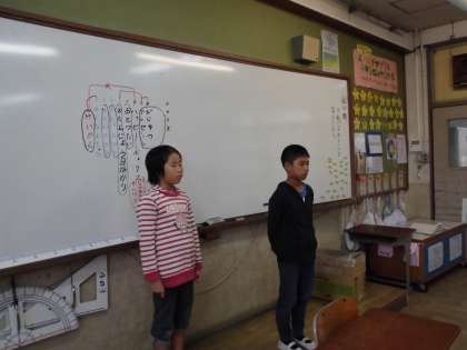 後期の新しい係を決めました。代表委員が前に出て司会をしたり,書記をしたりしています。みんなが楽しくなるクラスを作るために,いろいろな係を考えました。