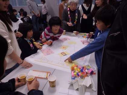 子どもたち,大学生の方々,地域の方々のそれぞれが役割を分担して協力しながら作っていました。