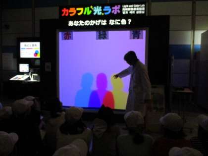 実験のひとつ、「カラフル光ラボ」の実験の様子です。