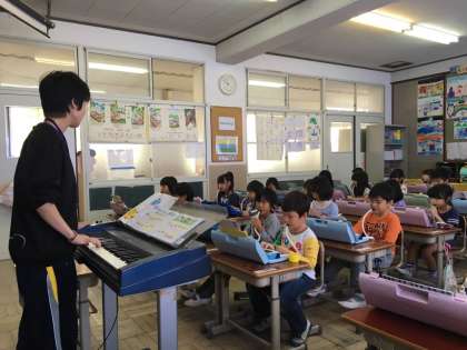 10月から4週間、教育実習の先生が来ています。先週から国語や算数、音楽の授業をしてくれています。子どもたちも一生懸命に学習を頑張っています。休み時間には一緒に大縄をしたり、給食時間には楽しくお話しながら食べてたりしています。