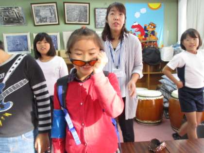 アイスブレイキングの後は,高齢者疑似体験グッズを使って