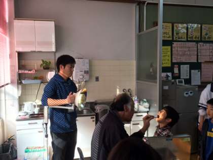 学校歯科医の水谷先生にむし歯がないかどうか,はみがきがきちんとできているかどうかを見ていただきました。
