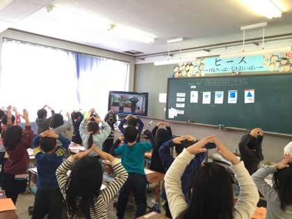 今日の英語活動では、形について学習しました。丸、三角、四角、ハート、星の5つの形を英語で何度も言う練習をしました。英語の発音は難しいですが、子どもたちは楽しく発音練習をしていました。その後、オリジナルソングをテレビの動画を見ながら振付けをしながら歌いました。これから、この5つの形を見たら英語で言えるようになるといいですね。また授業でやりたいと思います。