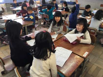 冬休みの宿題になっていた生活の「にこにこ大さくせん」の報告会をしました。子どもたちは、家でお風呂洗いをしたり、料理のお手伝いをしたり、新聞を取ったりなどさまざまなお手伝いを頑張ってきたようです。そして、どの子も家の方に「ありがとう」と感謝の言葉をもらったそうです。これからも冬休みにお手伝いしたことを続けられるといいですね。