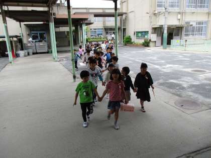 ペアの1年生の手を引いて歩く姿は,すっかりお兄さん,お姉さんです。